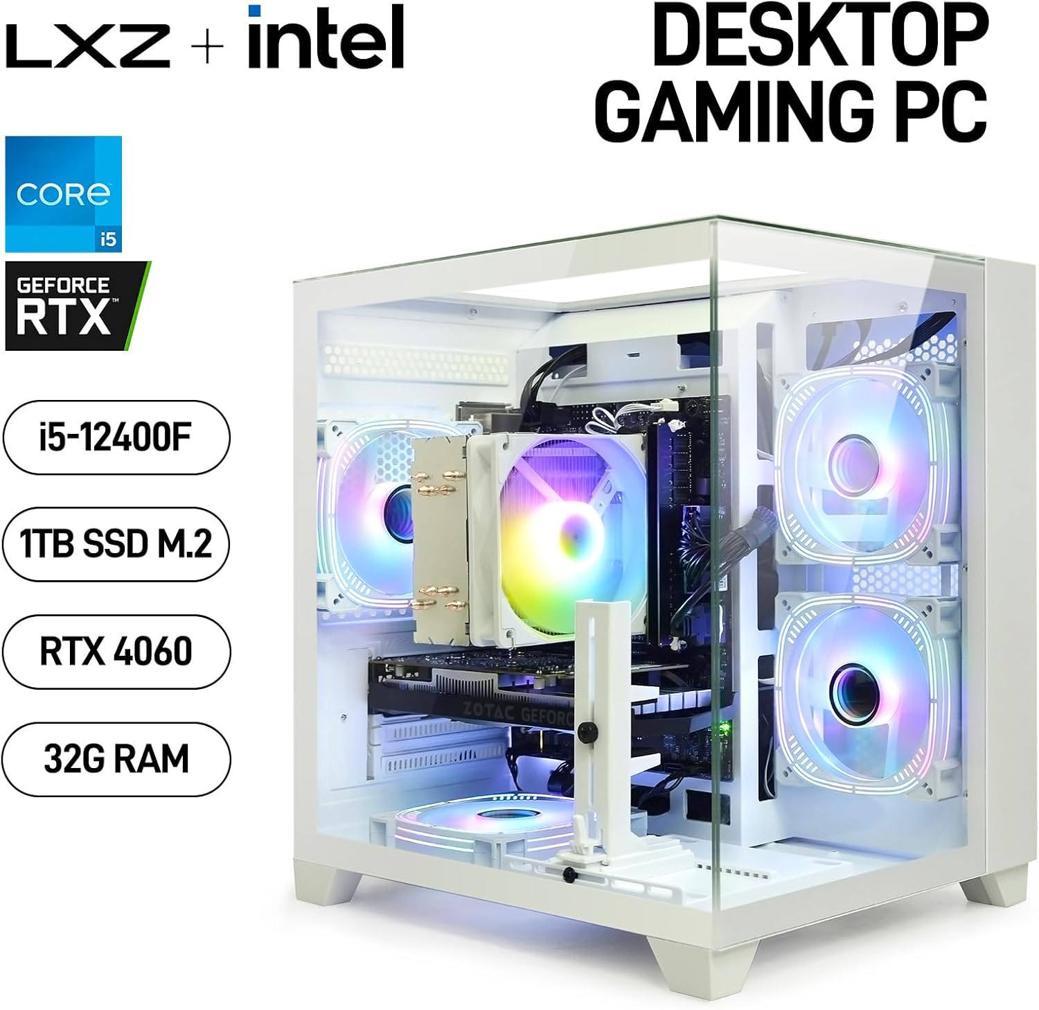 Gaming Desktop Intel Core I5-12400F 6 core 2.5GHz PC Computer, RTX 4060 8G, 32G DDR4 RAM, 1TB NVME SSD, Prebuilt Gaming PC Tower Computer for Home and Office (White)